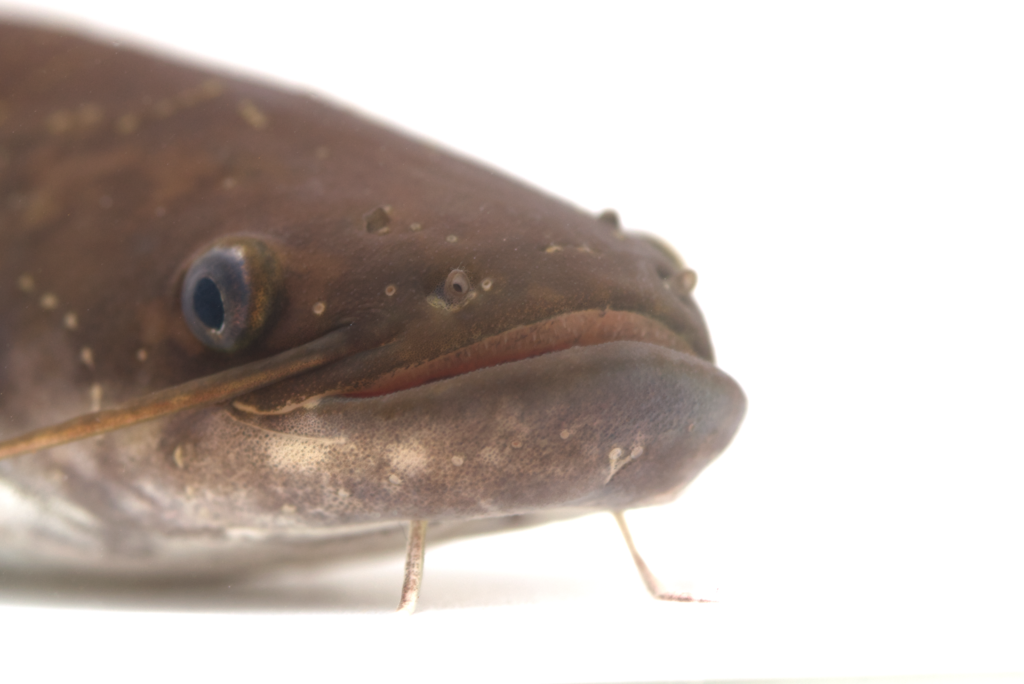 50cm以上。ずんぐりした体。口のまわりに 4本(上あごに2本・下あごに2本)。